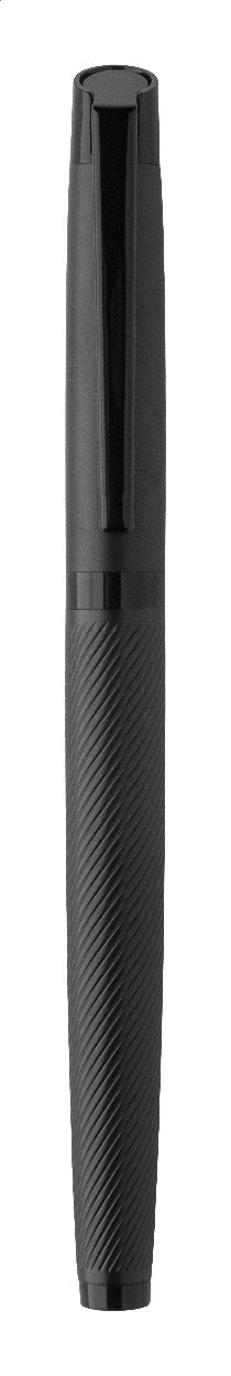 Set elegant de pix și roller, din metal, cu corp texturat diagonal. În cutie cadou în două culori, cu mină albastră. Produs marca André Philippe.
