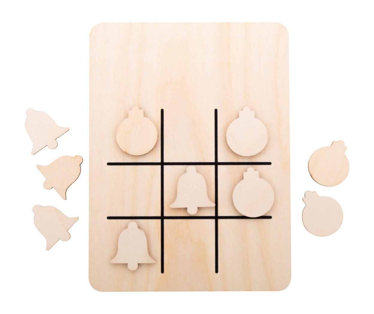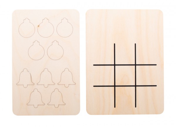 Joc X și 0 cu design de Crăciun din placaj de mesteacăn cu 10 jetoane și tablă de joc.