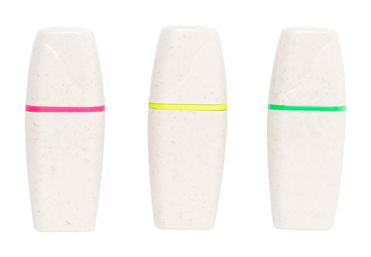 Set marker, în carcasă transparentă, cu capac din plastic din paie de grâu. Include 3 carioci din plastic din paie de grâu cu capac în 3 culori diferite.