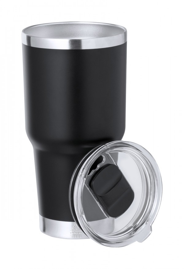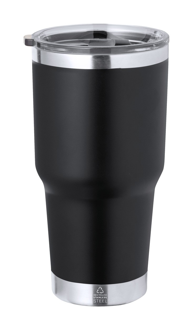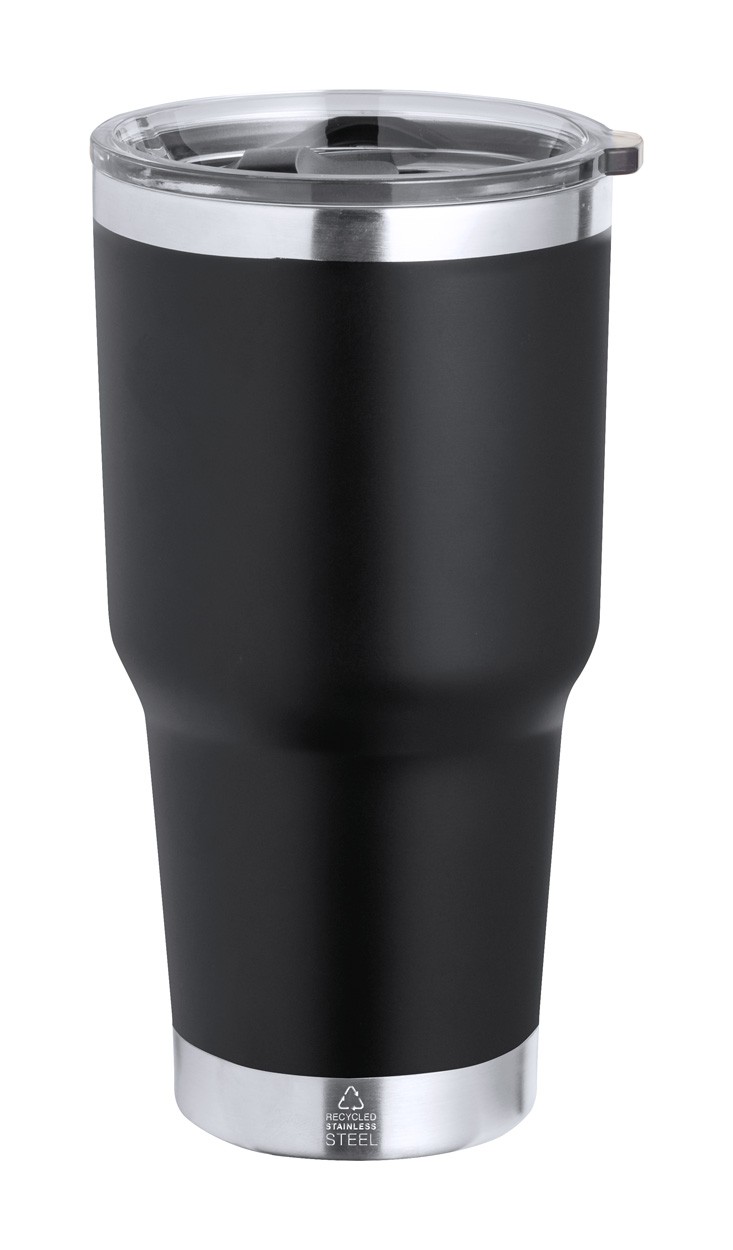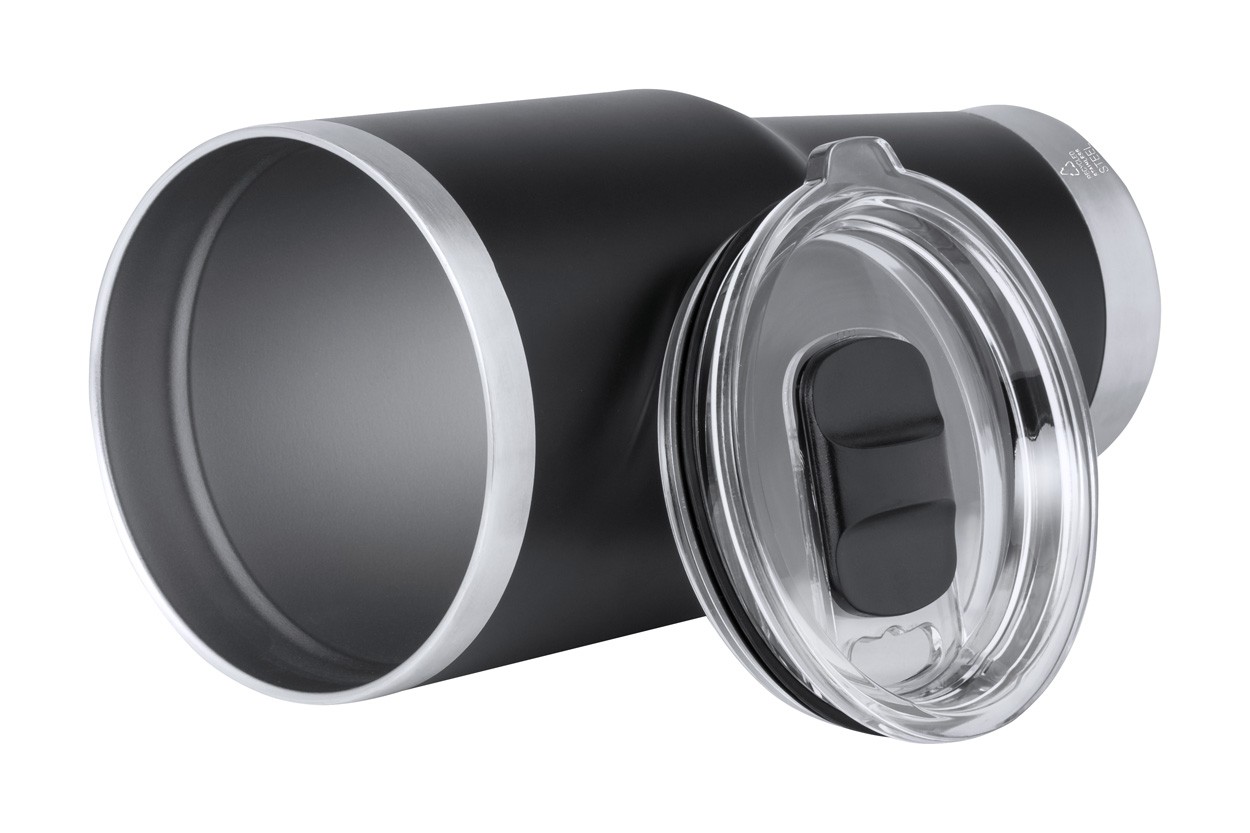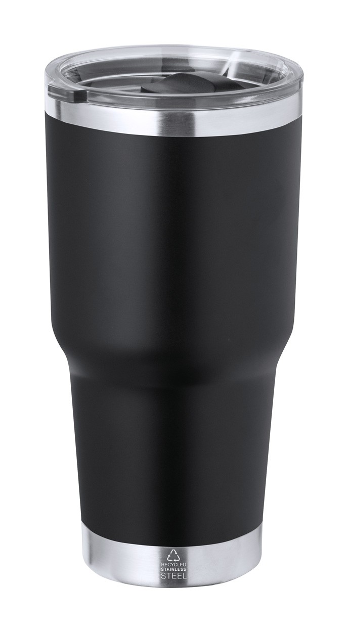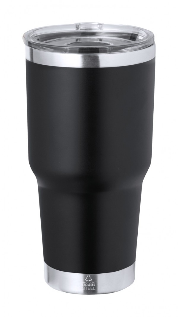 Cană termoizolată, din oțel inoxidabil reciclat cu perete dublu, cu capac de plastic, 600 ml.