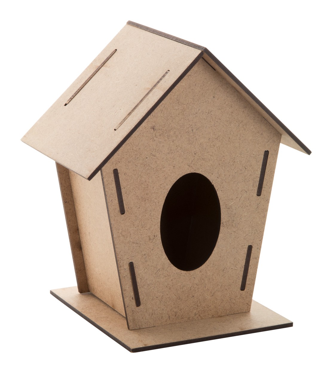 Căsuță din lemn pentru hrănit păsări. Se livrează pliată.