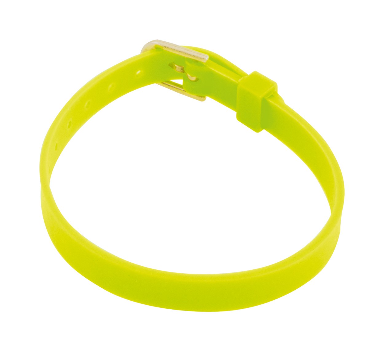 Brățară reglabilă cu cataramă metalică, din PVC.