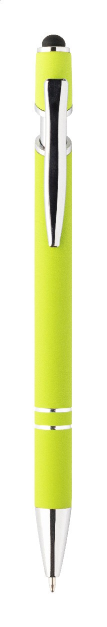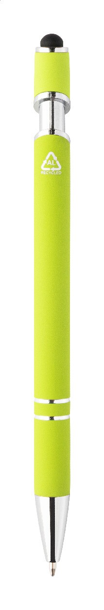 Pix cu bilă și capăt pentru ecran tactil, din aluminiu reciclat, cu corp cauciucat și detalii cromate. Cu mină albastră.