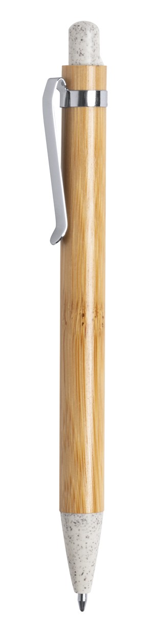 Pix din bambus cu vârf și buton din plastic ecologic din paie de grâu, clips din metal. Mină albastră.