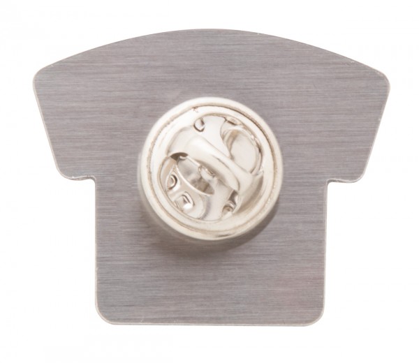 Insignă metalică cu epoxy, în formă de tricou. Preţul articolului include personalizarea cu epoxy.
