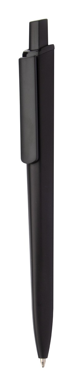 Pix din plastic cu clips negru și finisaj metalic mat. Mină albastră.