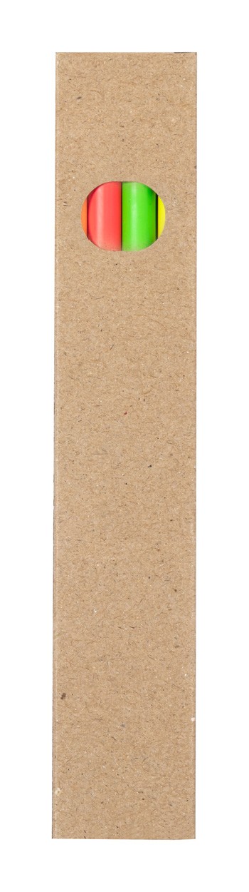 4 wooden colouring pencils in recycled cardboard box.