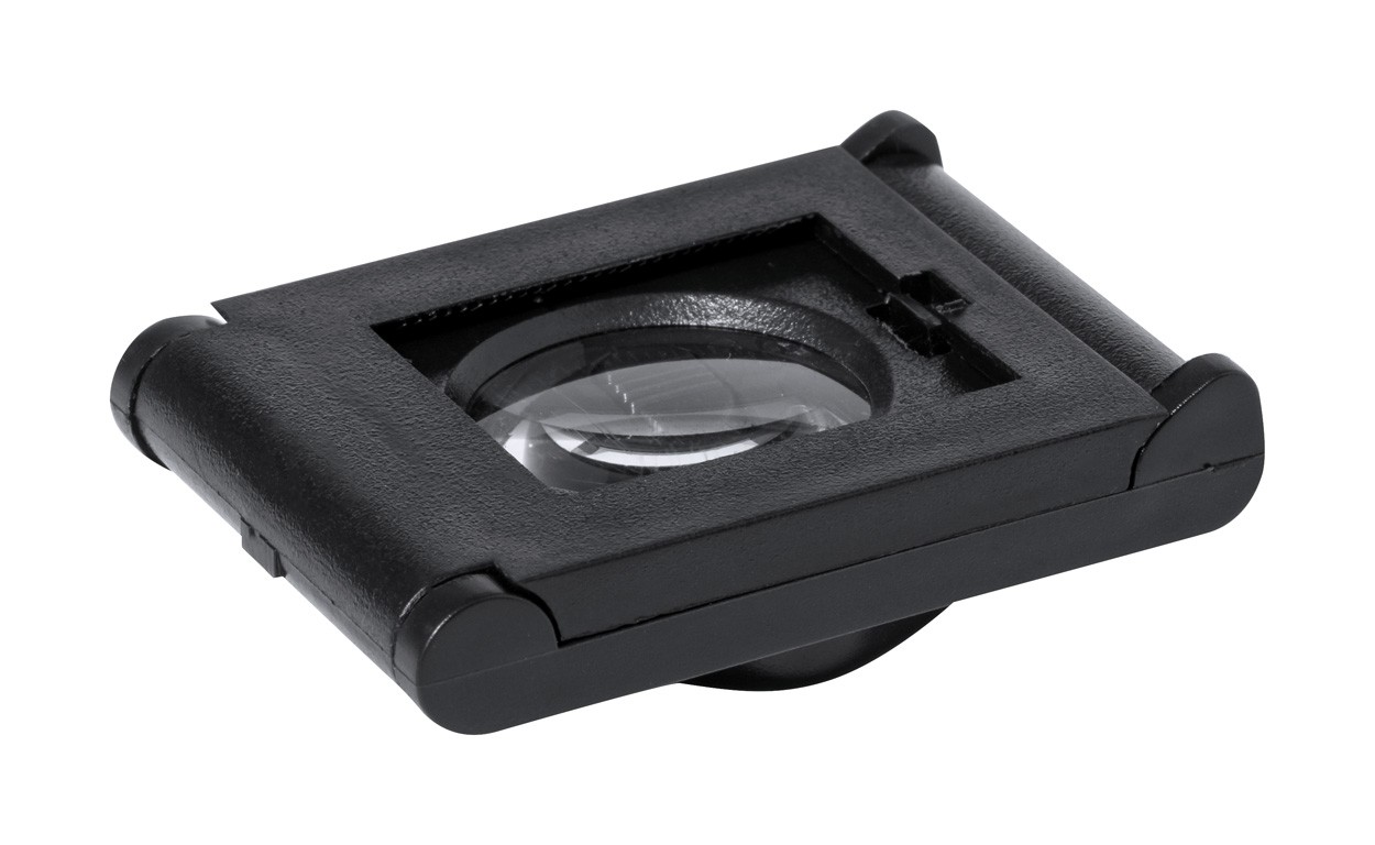Foldable magnifier in PP plastic with 1 LED and ruler. Including button cell batteries.