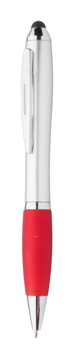Pix din plastic cu stylus pentru touch screen, corp argintiu şi dispozitiv de prindere cauciucat colorat. Mină albastră.