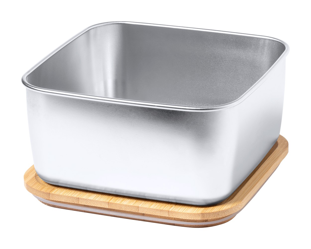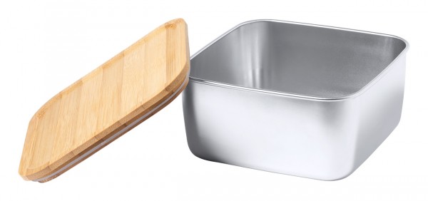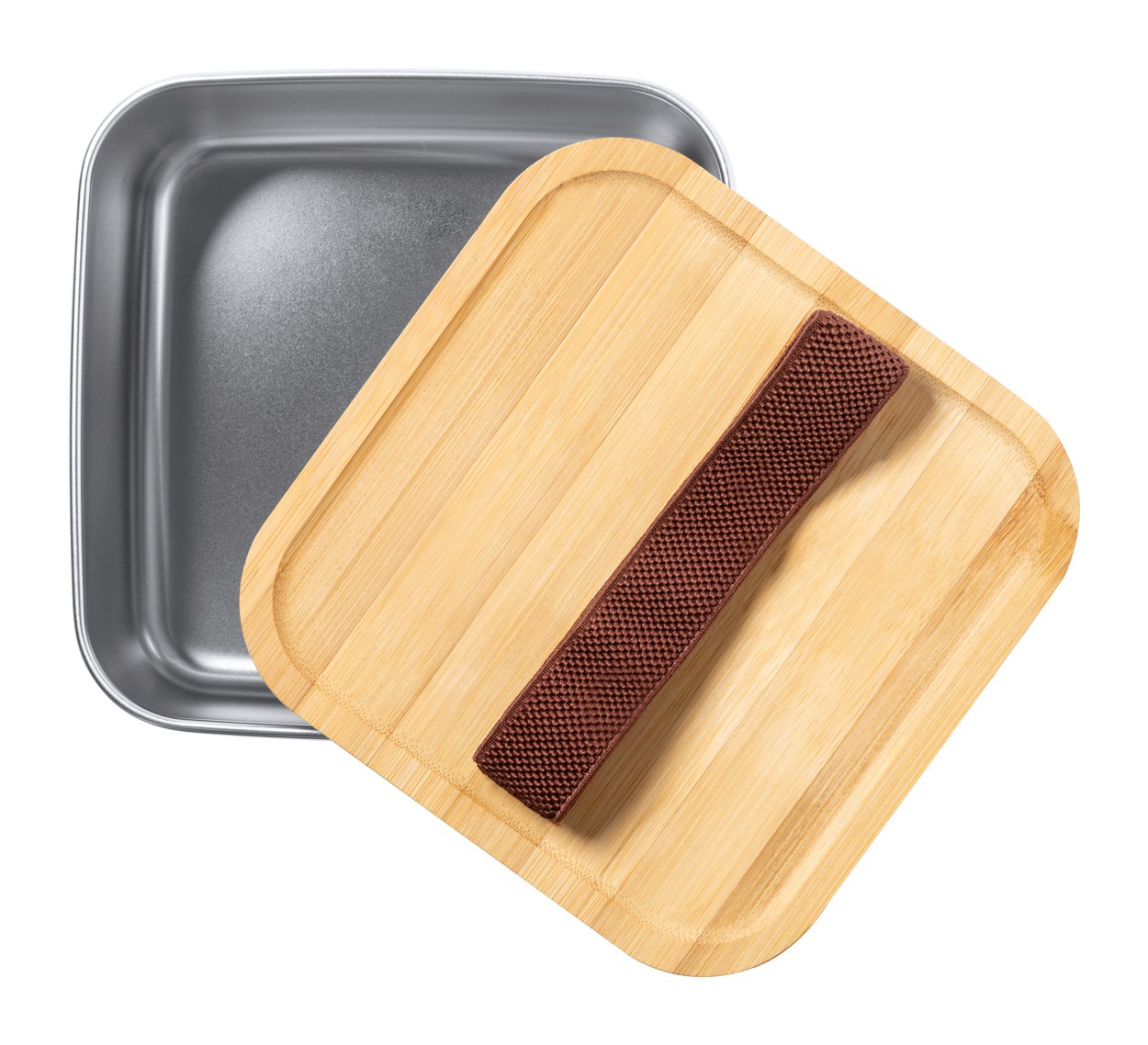 Cutie pentru prânz, din oțel inoxidabil, cu capac din bambus și curea elastică. 1400 ml.