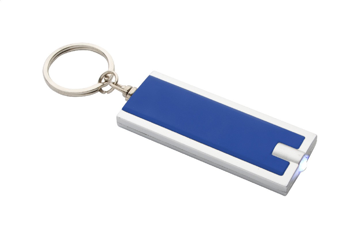 Breloc din ABS reciclat, cu lanternă LED și breloc metalic. Cu baterii tip pastilă.