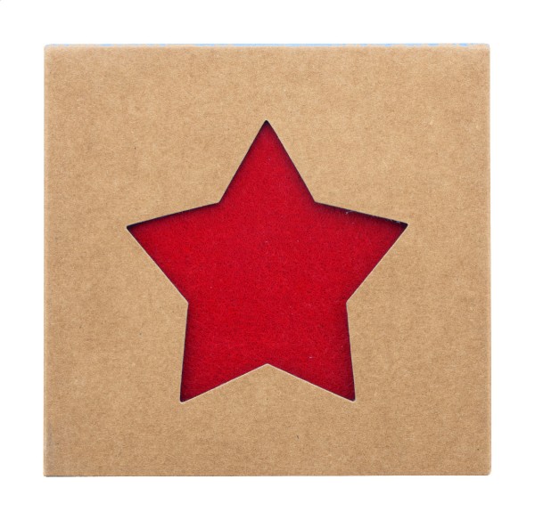 Set de 4 suporturi de pahare, de Crăciun, în formă de stea, din fetru RPET. În cutie de hârtie kraft.
