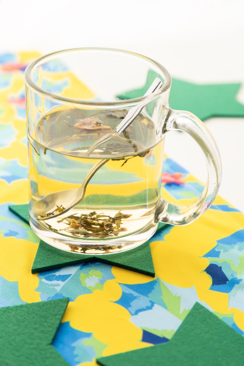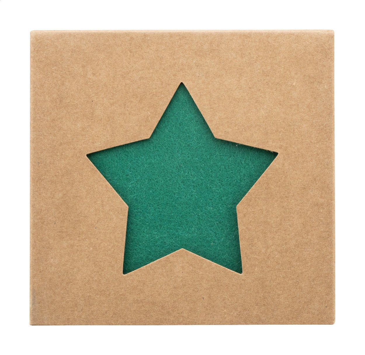 Set de 4 suporturi de pahare, de Crăciun, în formă de stea, din fetru RPET. În cutie de hârtie kraft.