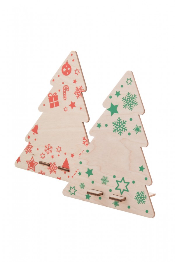 Suport pentru telefon mobil, de birou, in formă de brad, din placaj de mesteacăn. Livrat ambalat plat.