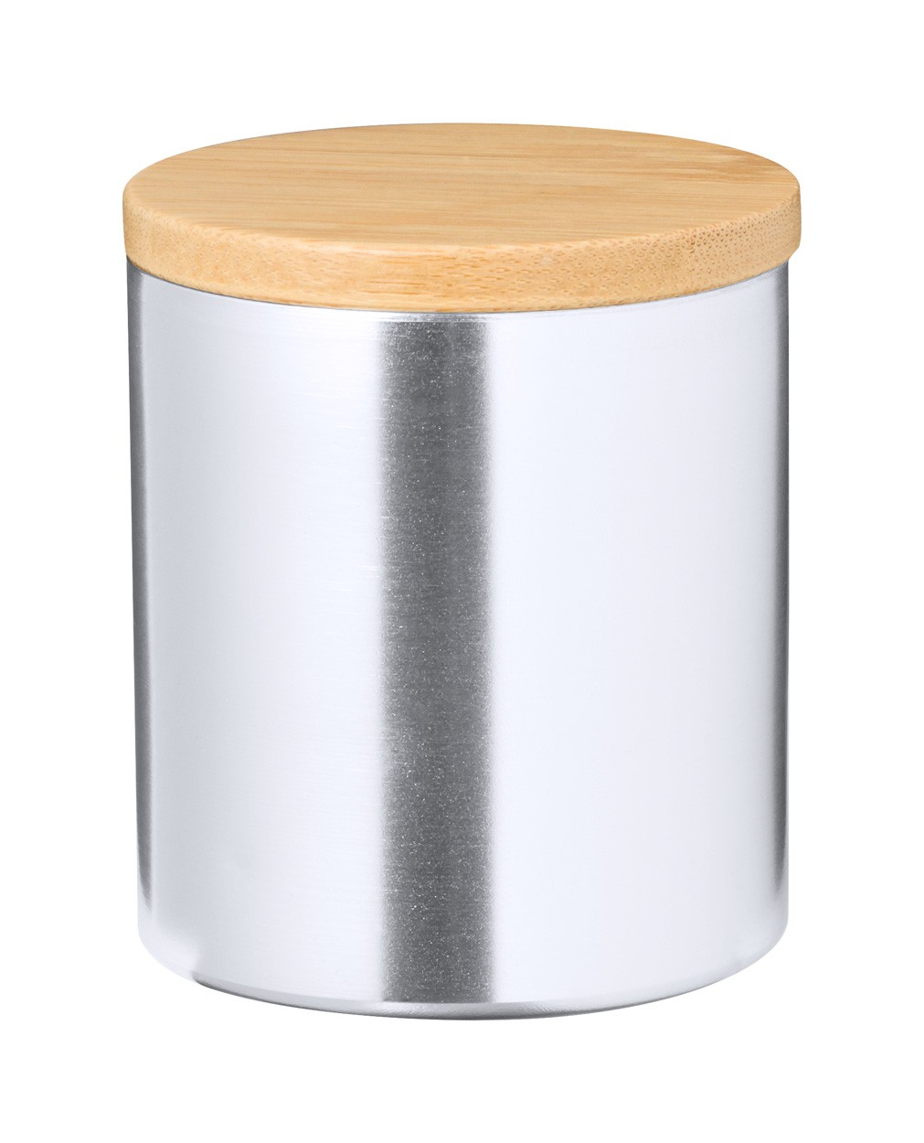 Lumânare cu parfum de vanilie, în suport din aluminiu, cu capac din bambus.