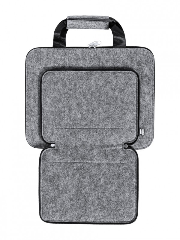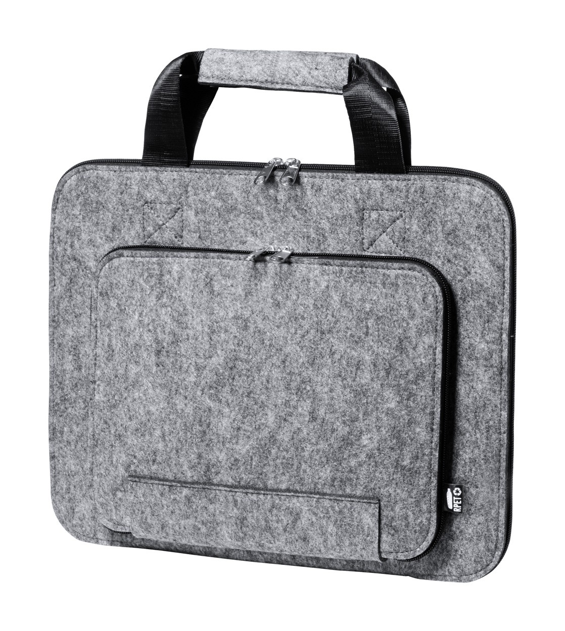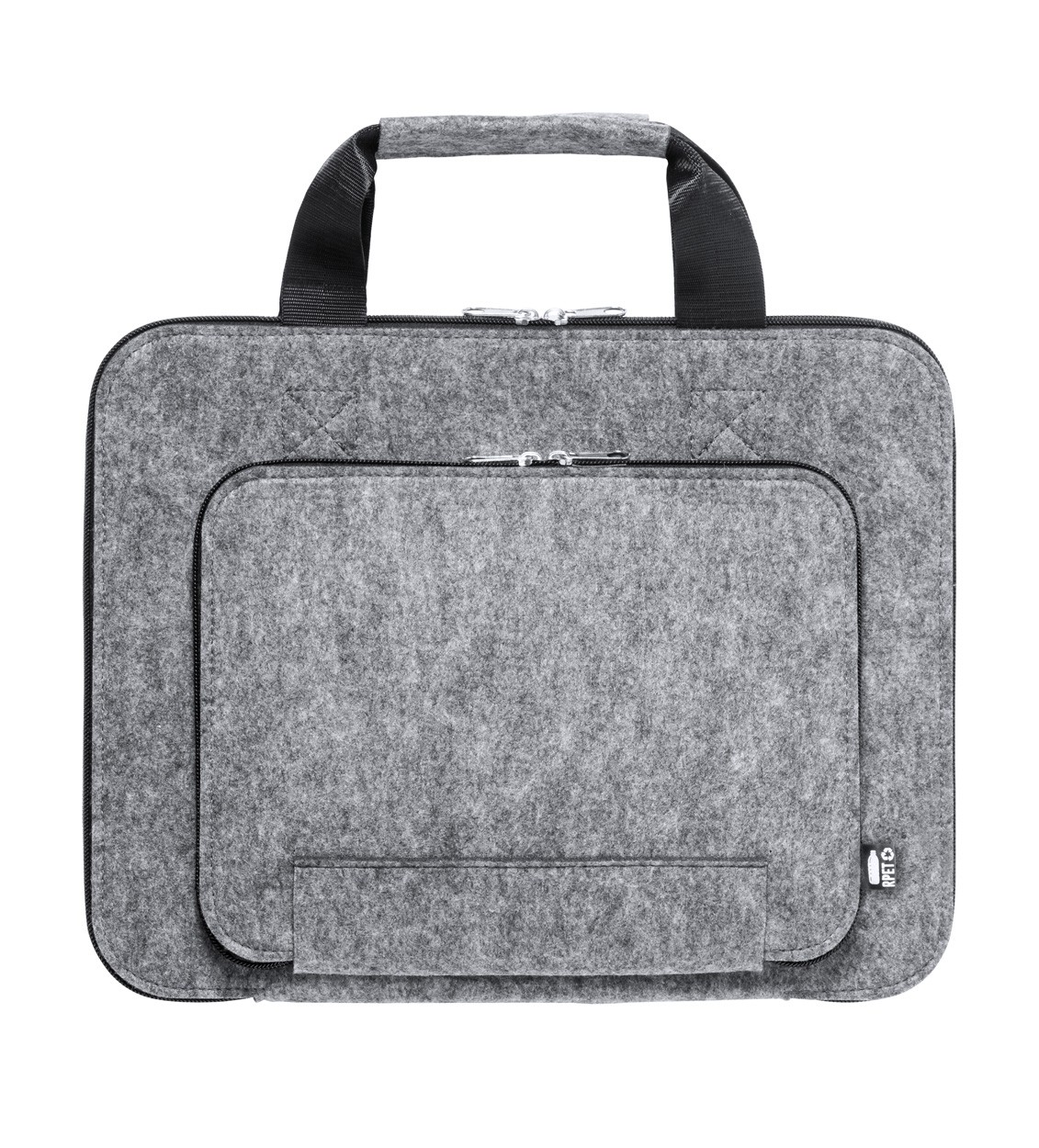 Geantă pentru documente, din fetru RPET, cu compartiment principal cu fermoar și buzunar frontal. Cu etichetă distinctivă RPET.