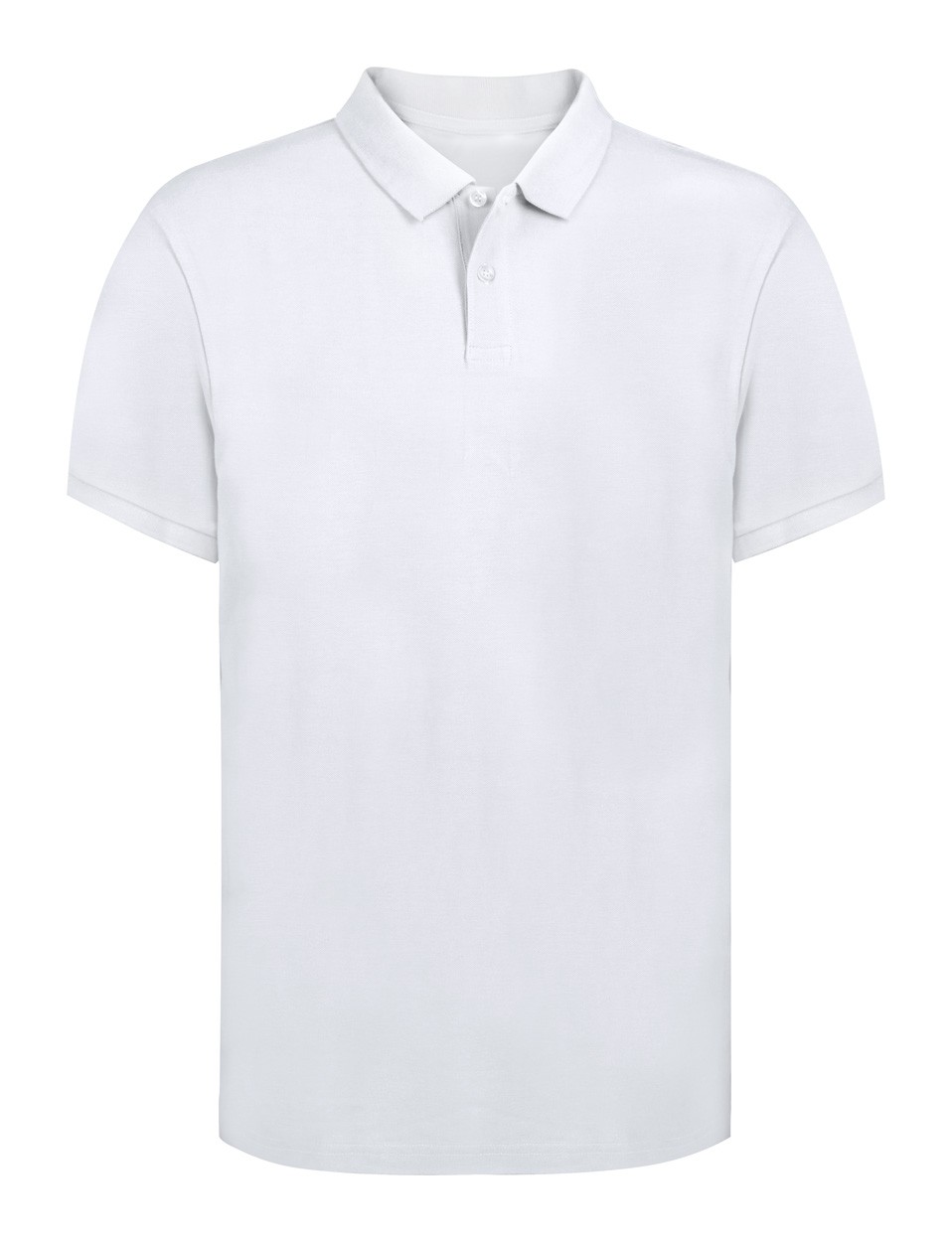 Tricou polo piqué , alb, cu doi nasturi de culoare asortați. 100% bumbac ringspun, 220 g/m².