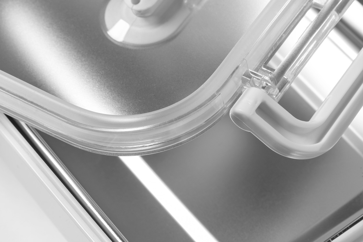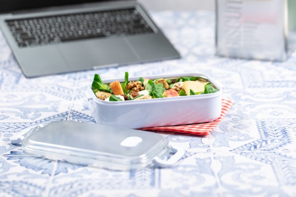 Cutie de prânz, termică, din plastic PP, cu tavă din oțel inoxidabil și capac transparent cu blocare ermetică. 500 ml. Adăugând apă fierbinte sub tăvi, efectul termic poate fi prelungit.