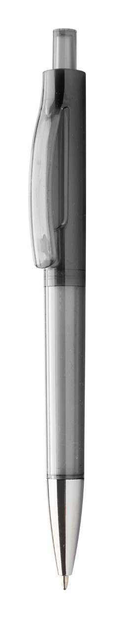 Pix din plastic transparent cu vârful cromat. Mină albastră.