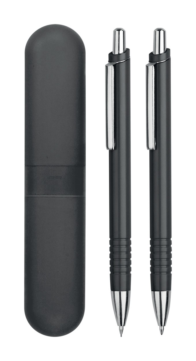 Pix şi creion mecanic(0.7 mm) din aluminiu în etui din plastic. Mină albastră.