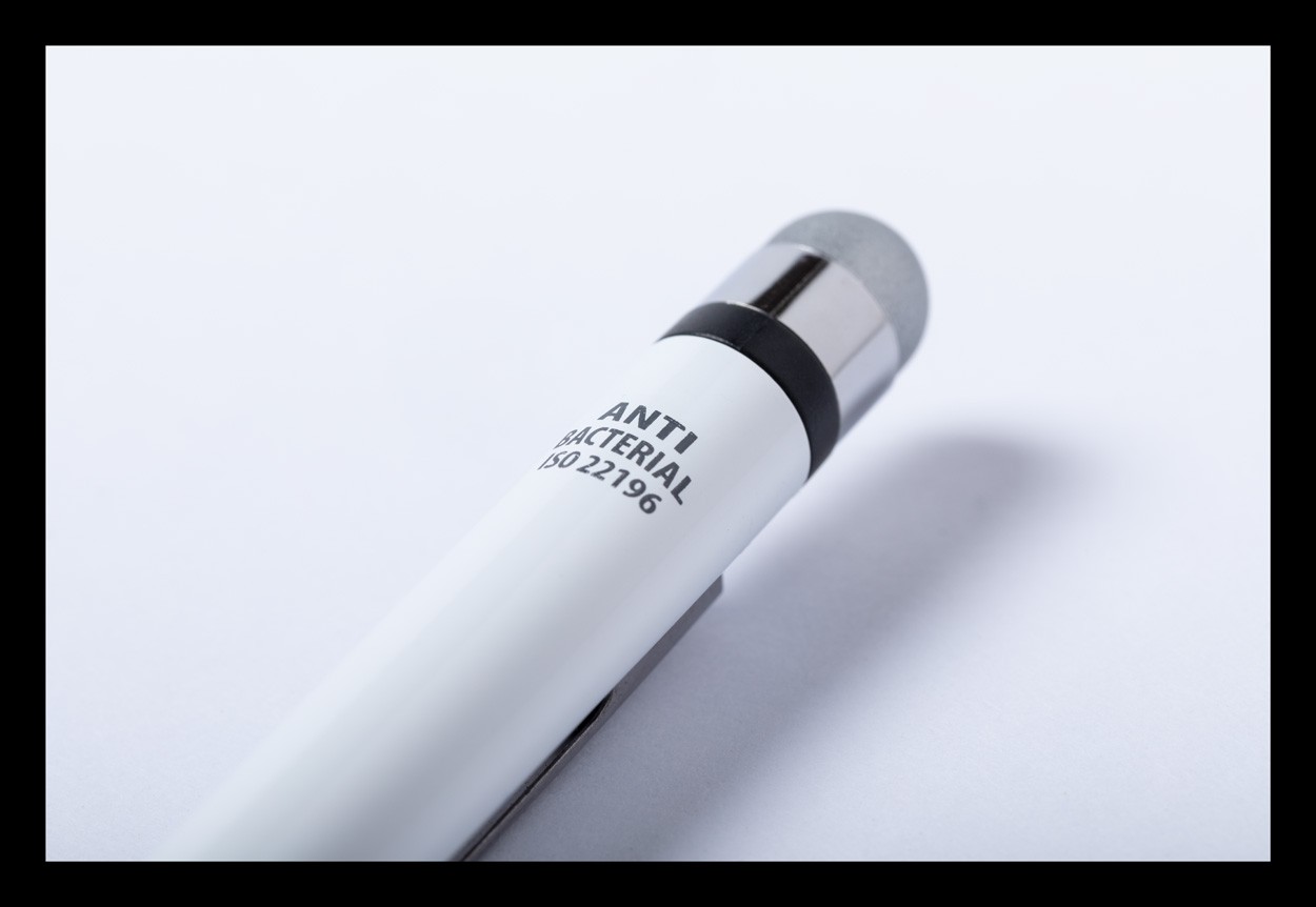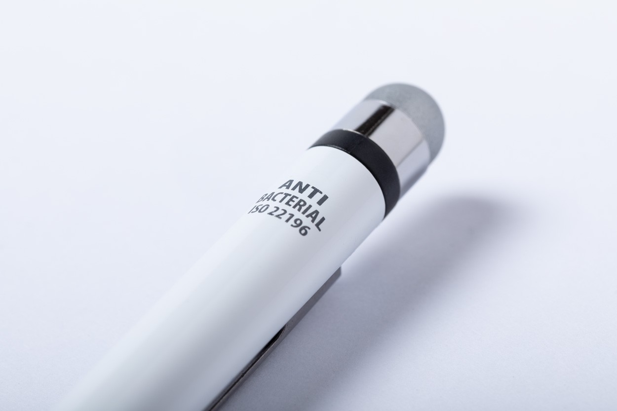 Pix din plastic antibacterian cu touch screen si mina albastra. Conform ISO 22196.