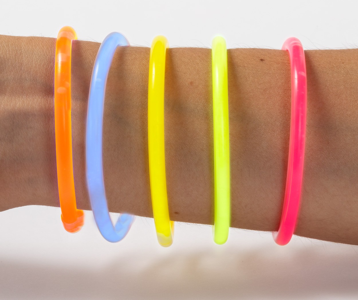 Brățară fluorescentă, cu lumină de neon, activată prin îndoire și scuturare.