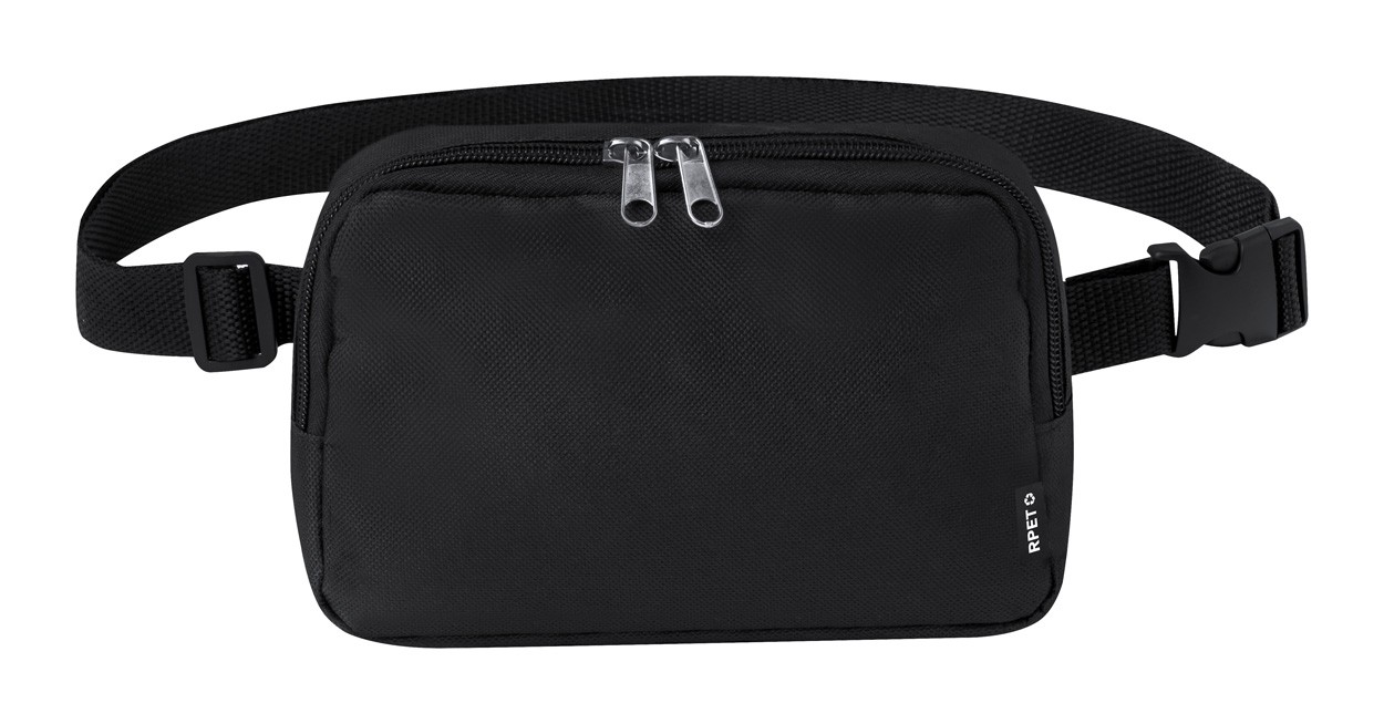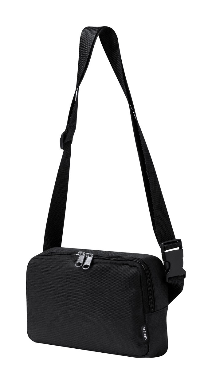 RPET crossbody waist bag with zipped main compartment and adjustable strap. 600D RPET polyester with distinctive RPET label.