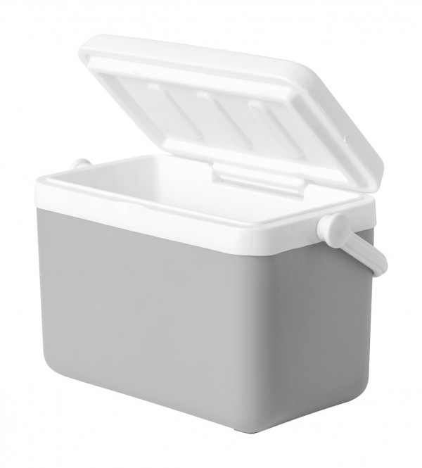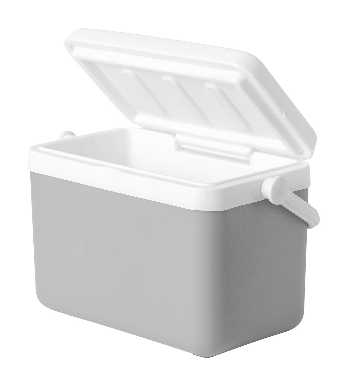 Geantă frigorifică, din plastic PP, cu capac cu balamale, cu încuietoare de siguranță și mâner.