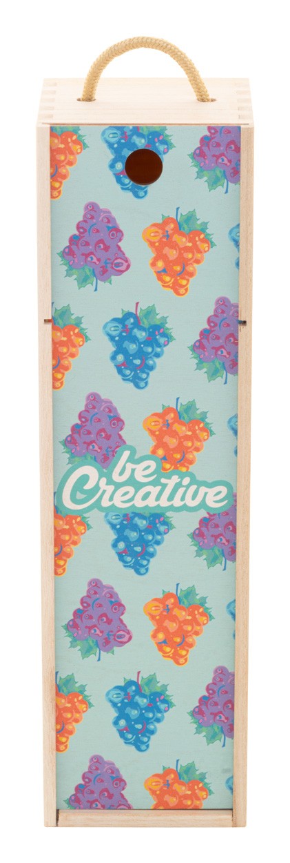 Cutie cadou de vin, realizată la comandă, cu mâner din șnur și capac imprimat color. Prețul include imprimarea UV LED. MOQ: 50 buc.