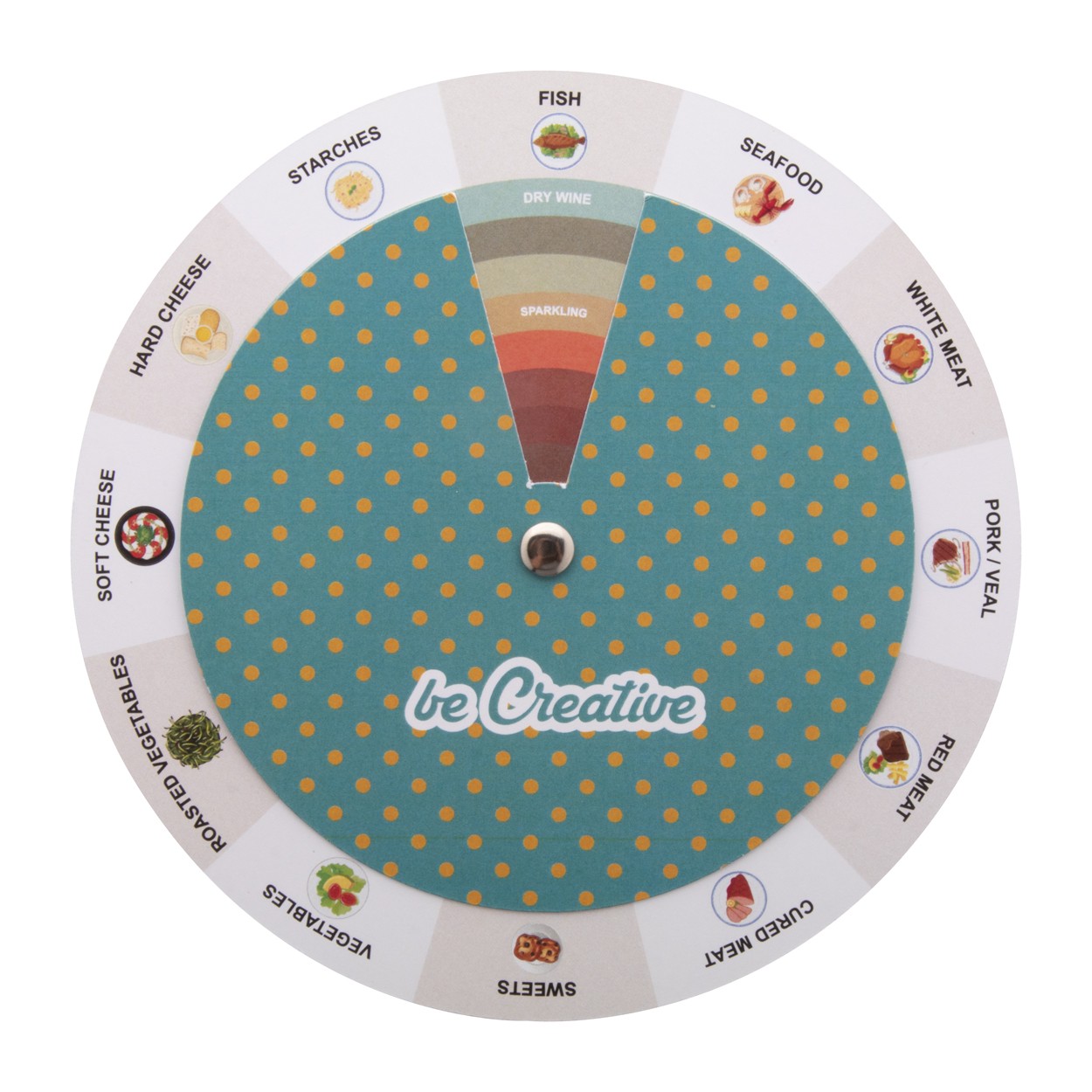 Disc rotativ personalizat din hartie, pentru asocierea vinrilor cu mancarea. Pretul include imprimarea full colour. Cantitate minima de comanda 100 buc.