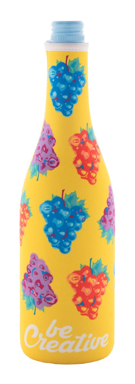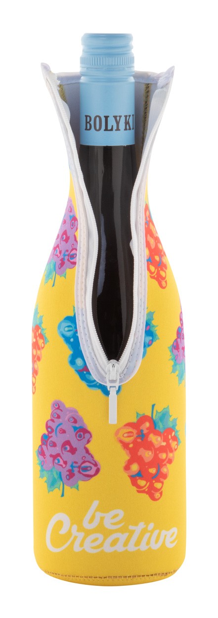 Husă termică, din neopren, realizată la comandă, cu fermoar, pentru sticlă de vin sau șampanie. Cu grafică imprimată prin sublimare. MOQ: 50 buc.