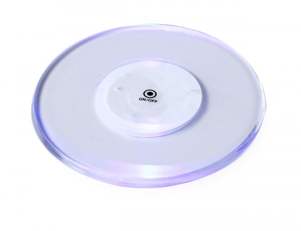 Coaster acrilic cu 6 lumini LED multicolore și 3 moduri de lumină. Include baterii tip buton.