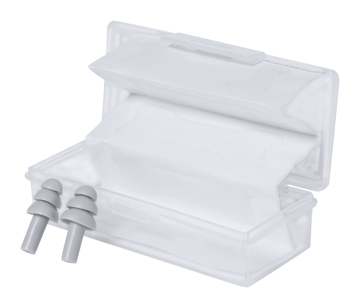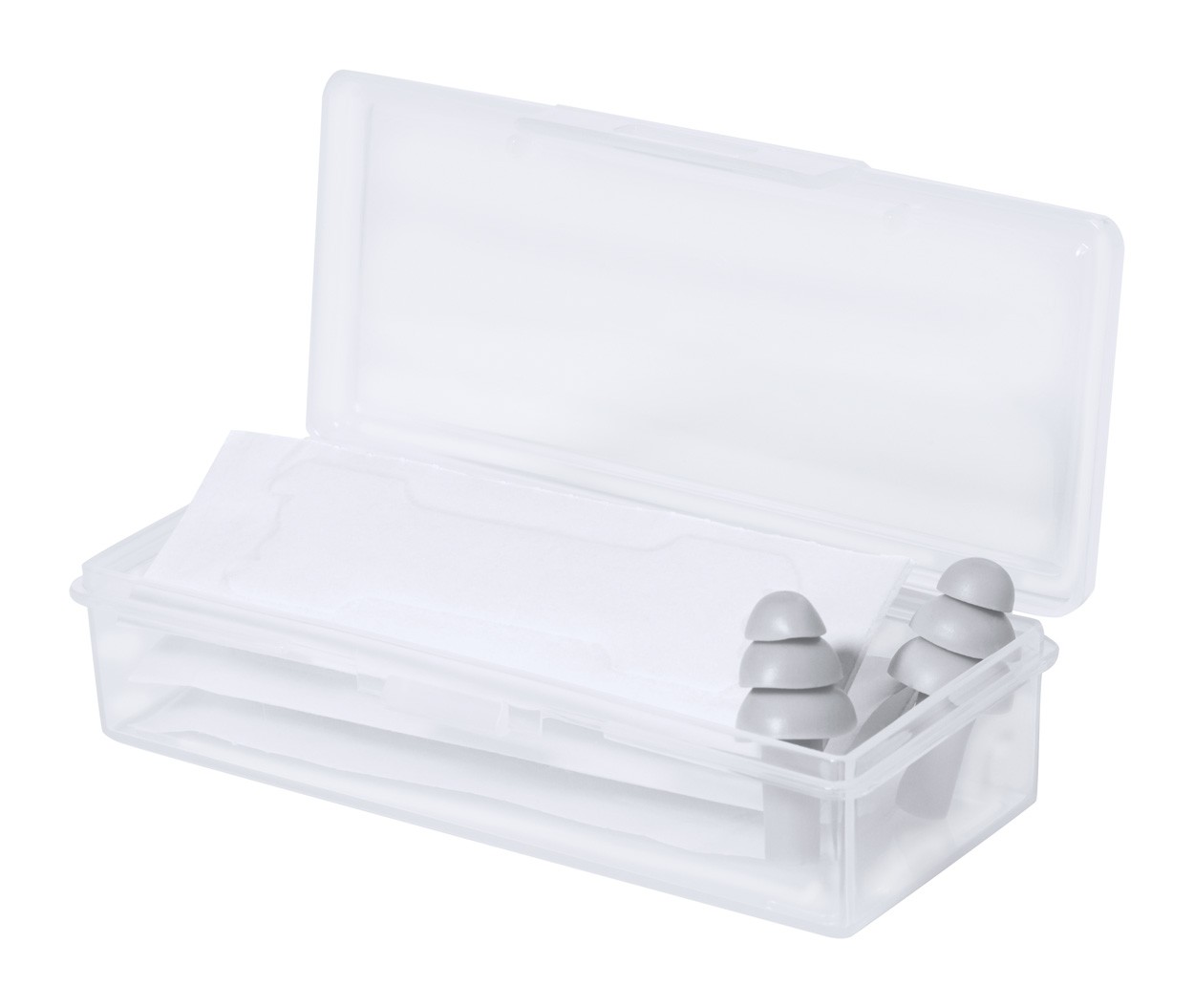 Set pentru odihnă, în cutie de plastic PP, care include 1 pereche de dopuri de urechi din silicon reutilizabile și 5 benzi nazale.