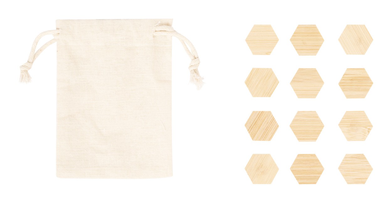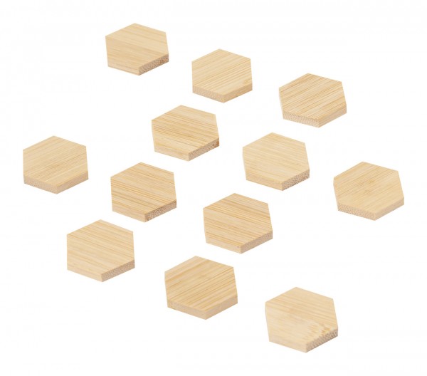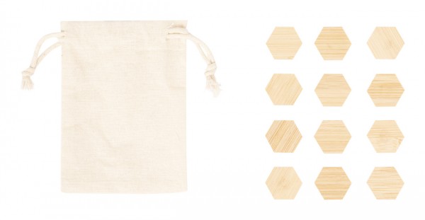 Set de 12 bucăți de magneti pentru frigider, din bambus, în husă din bumbac cu șnur.