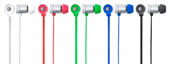 Căsti cu înveliș din aluminiu, cu bluetooth, handsfree și baterie reîncărcabilă încorporată. Cu cablu încărcător USB.