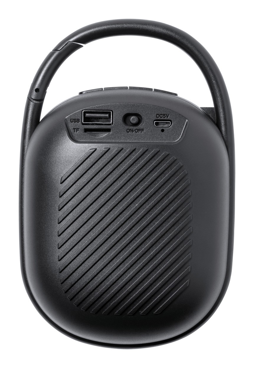 Boxă portabilă din plastic ABS, cu lumini LED multicolore și 5 moduri de lumină. Cu apeluri hands-free, radio FM și funcții de redare micro SD și baterie reîncărcabilă încorporată. Inclusiv cablu de încărcare USB.