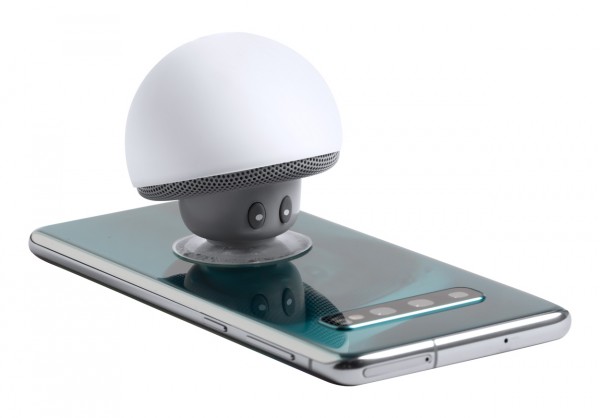 Boxă bluetooth mini în formă de ciupercă cu ventuză, hands-free si baterie reîncărcabilă. Se livrează cu cablu USB.