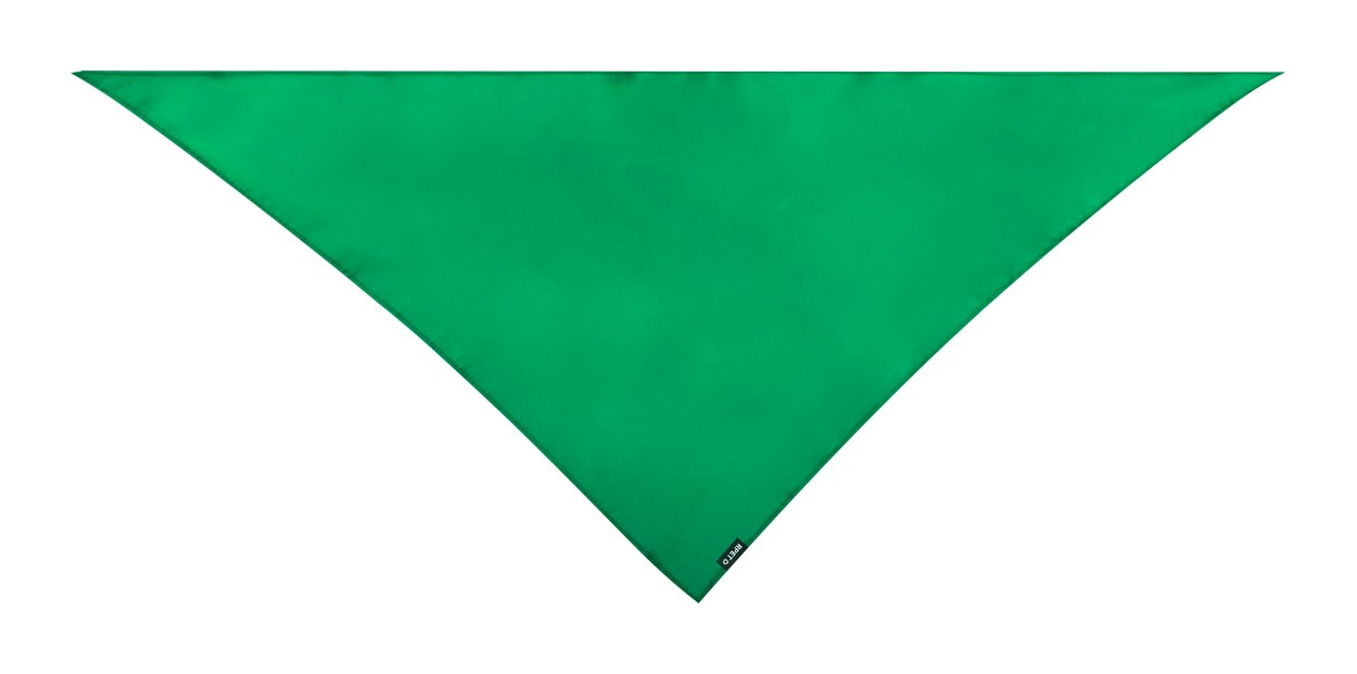 Bandană triunghiulară din poliester RPET 190T, cu etichetă distinctă RPET.