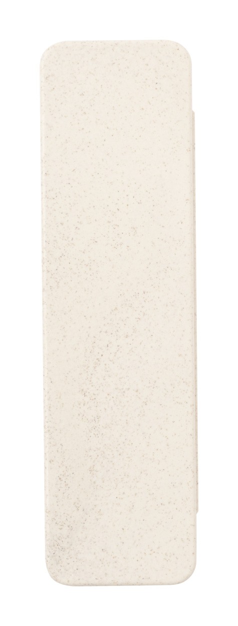 Set pentru scris, 5 buc, în cutie de palstic din paie ecologice de grâu. Inclusiv creion din lemn, hârtie reciclată și pix din plastic din paie de grâu cu reumplere albastră, riglă de 15 cm, ascuțitoare din lemn și radieră.