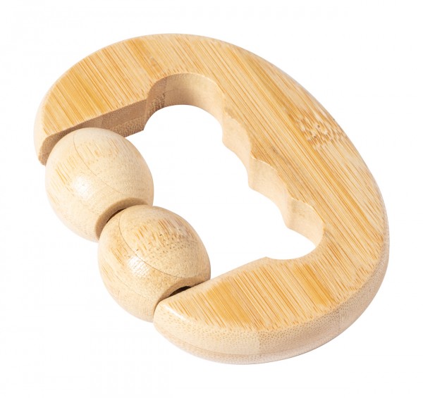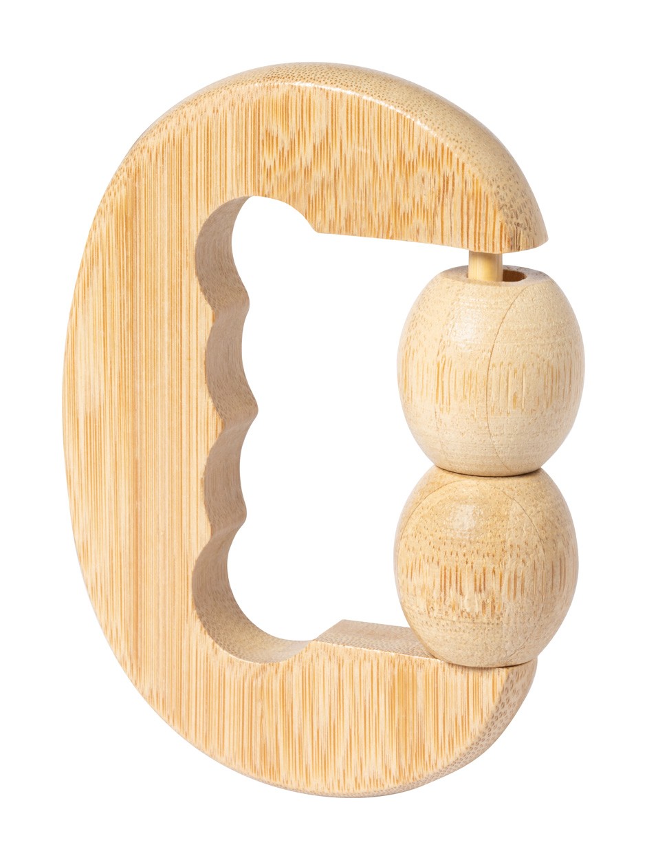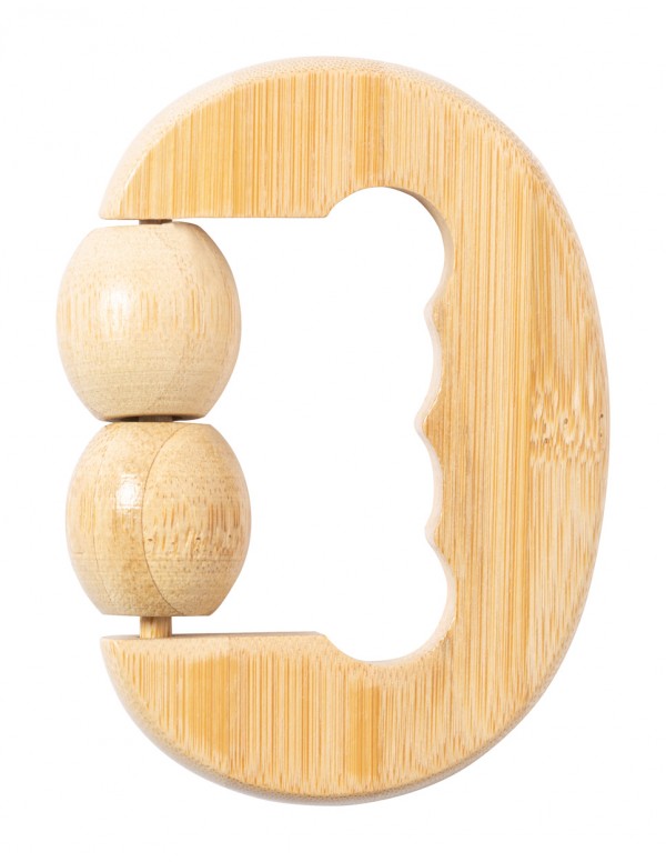 Aparat de masaj, din bambus, cu mâner ergonomic.