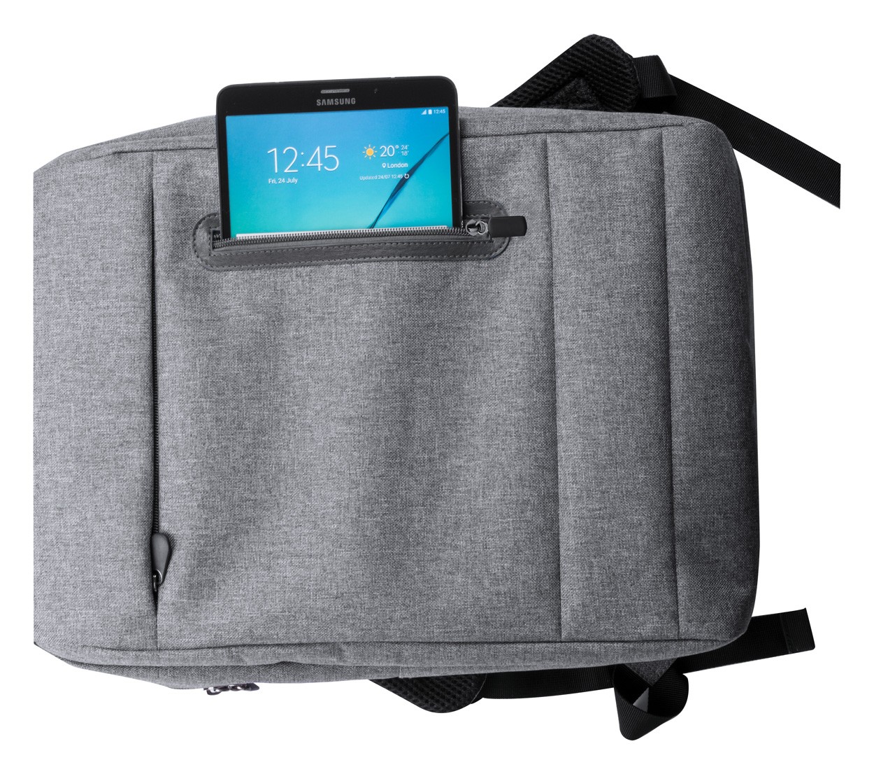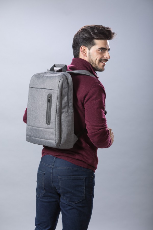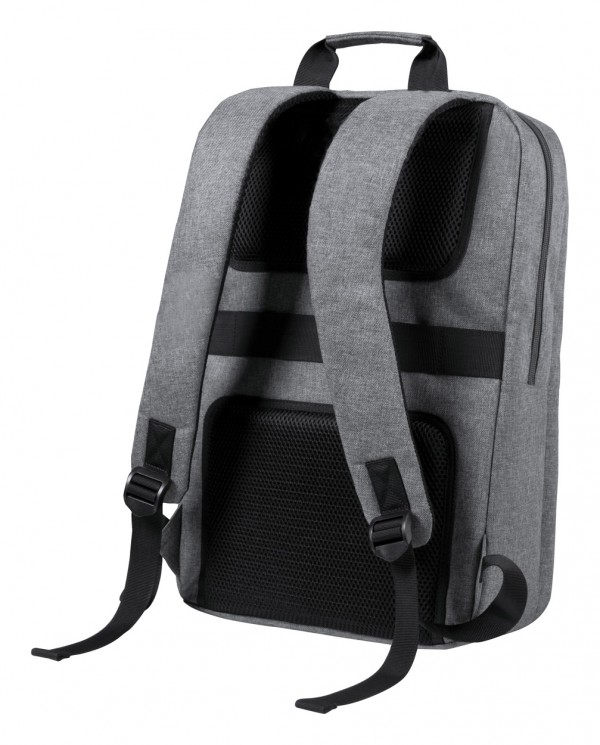 Rucsac cu mai multe compartimente cu fermoar, compartiment pentru laptop (15"), spate și bretele căptușite. Poliester 600D.