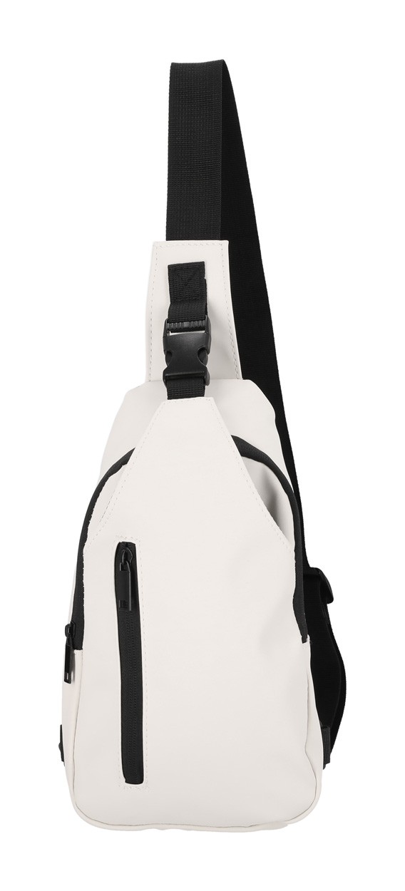 Geantă de umăr din piele PU, soft, cu compartimente cu fermoar, spate căptușit și curea reglabilă.