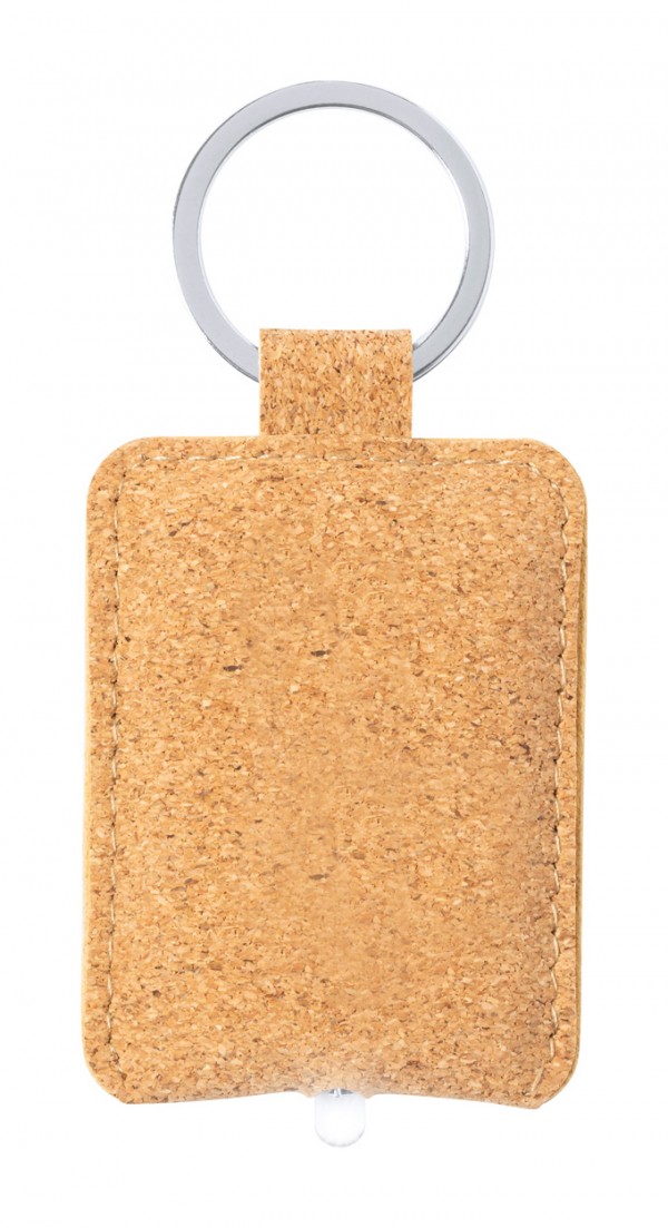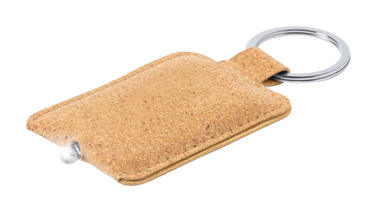 Lanternă mini, din plută naturală, cu 1 LED și breloc metalic. Cu baterie buton.