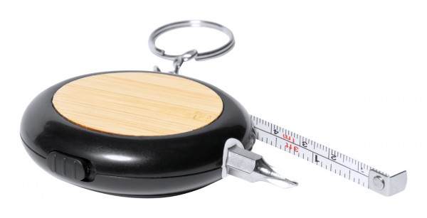 Ruletă din plastic, bambus și ABS (1 m) cu 4 funcții și inel metalic, inclusiv baterii tip buton.