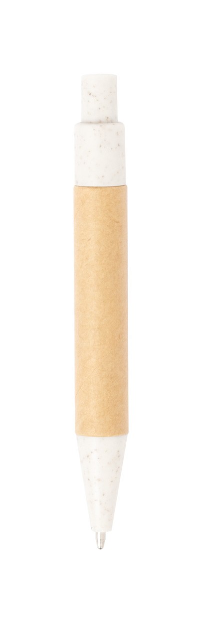 Recycled cardboard covered spiral notebook with 70 lined sheets, 15 sticky notes and 75 page markers (in 4 colours). Including recycled cardboard and wheat straw plastic ballpoint pen with blue refill.