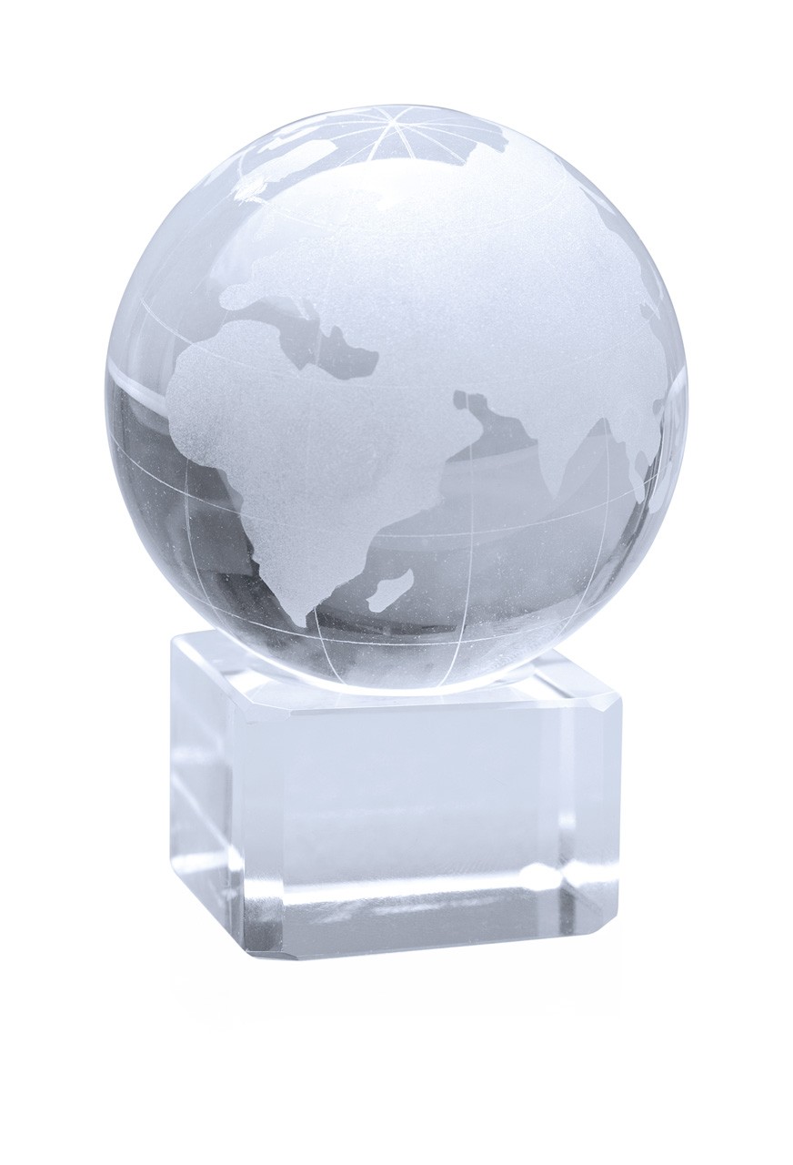 Glob de sticlă, pe postament tip cub de sticlă, în cutie cadou magnetică.