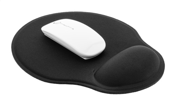 Mouse pad RPET cu suport pentru încheietura mâinii, ergonomic și bază anti-alunecare din cauciuc.