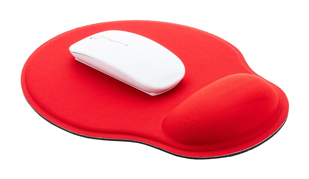 Mouse pad RPET cu suport pentru încheietura mâinii, ergonomic și bază anti-alunecare din cauciuc.