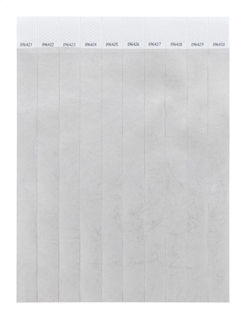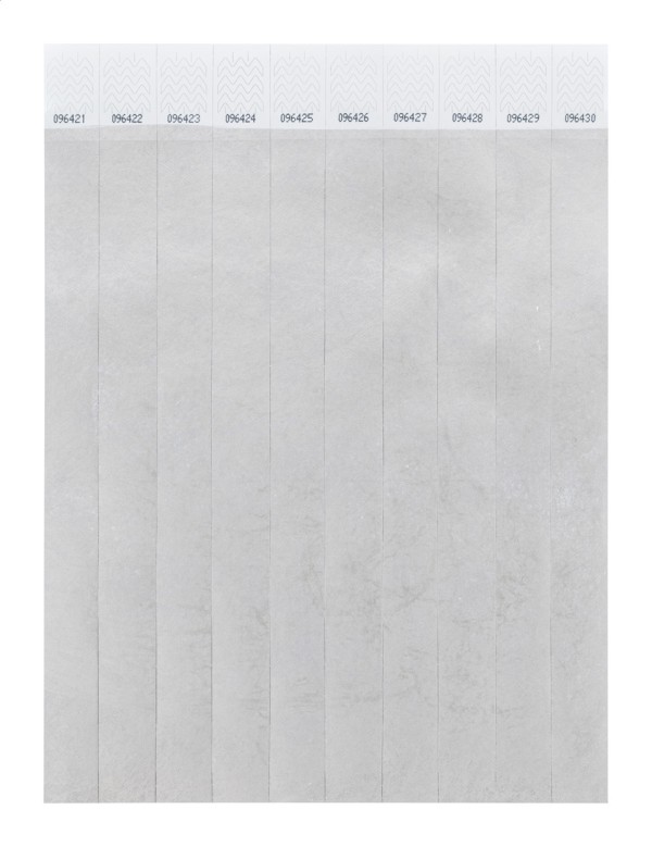 O coală de brățări tyvek, cu lățime de 19 mm (10 buc), cu închidere de siguranță adezivă și numerotare unică.