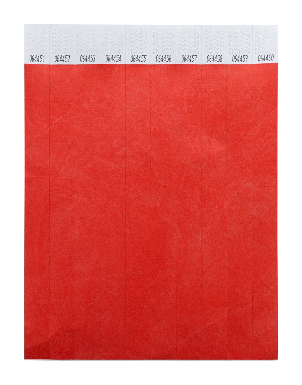O coală de brățări tyvek, cu lățime de 19 mm (10 buc), cu închidere de siguranță adezivă și numerotare unică.